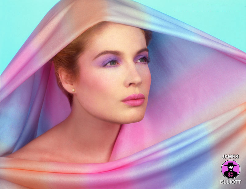 Elliott is world famous for his bold, confident use of colour. He has an evolved colour sense unmatched in contemporary art. Here the use of colour is very subtle. The most extraordinary thing is the incredible arc Elliott's use of colour spans. In this beautiful picture, all the saturation is on the down low and the colour is very nuanced. The make up is very astutely blended with the make up to yield a seamless composition. It is indeed a palette of pastels and expresses a very wistful sensuality.